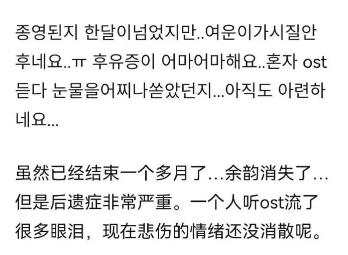 更有網友表示,已經看完一個多月,仍然走不出悲傷的情緒。