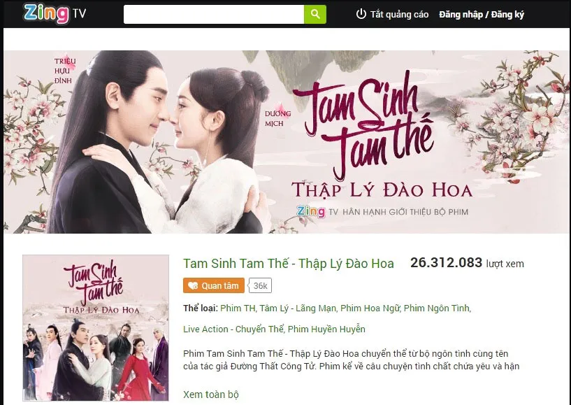 ● 越南最大視頻網站ZingTV上的《三生三世十里桃花》宣傳圖