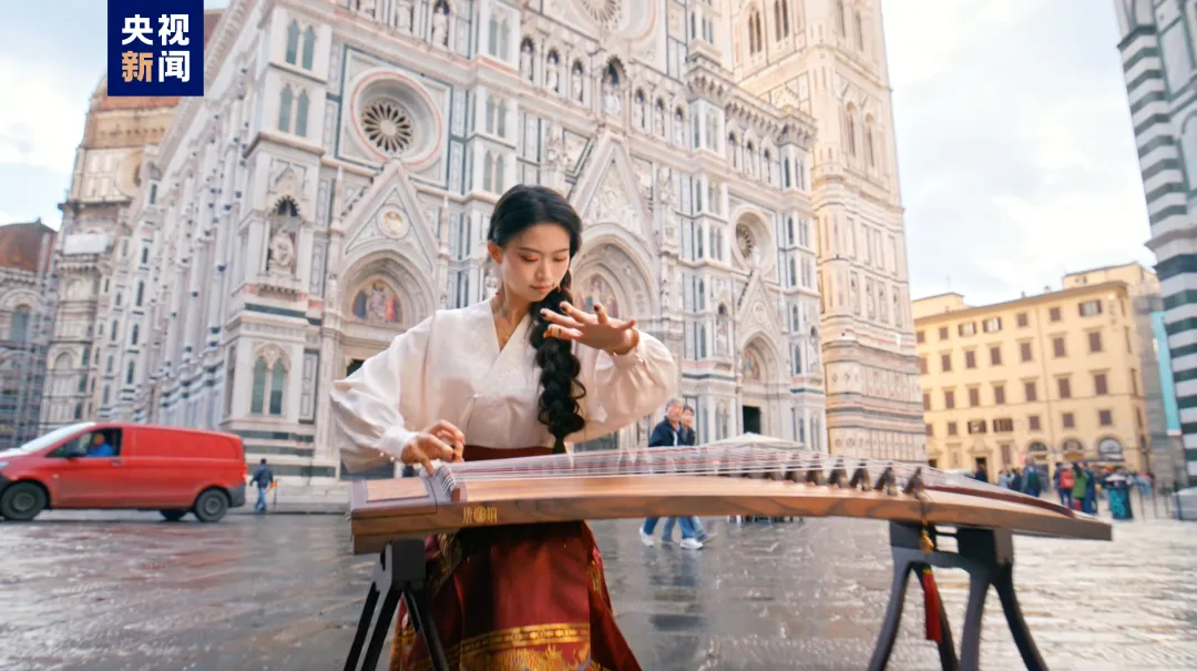 ● 在意大利佛羅倫薩進行古箏表演的中國女孩彭靜璇