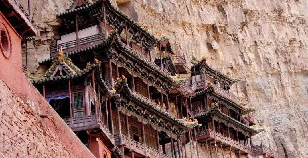 ● 恆山懸空寺皆以木柱支撐懸掛在懸崖峭壁上