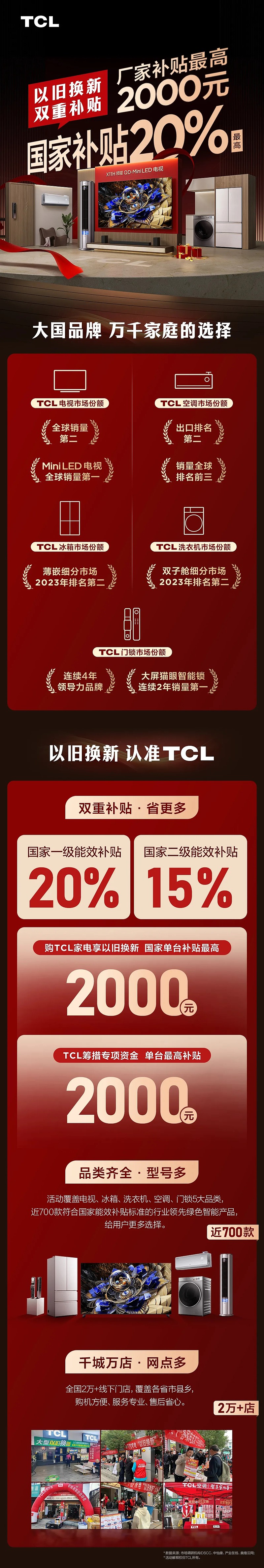 新家電往往也意味着更高的價格,在理性消費大潮之下,要讓大眾掏錢,補貼無疑是最有效的手段。基於此,TCL決定提升換新補貼額度,單個產品以舊換新補貼至高可達2000元,還能與當地補貼政策疊加使用,真金白銀回饋消費者。