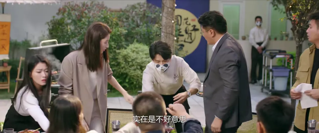 在唐漾要去赴團餐的約時,還是不放心,於是化身餐廳服務員。