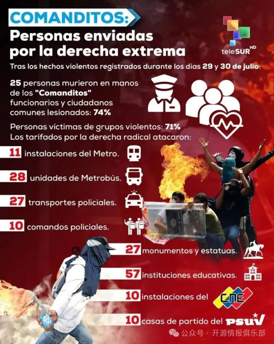 其中“突擊隊(Comanditos)”是委內瑞拉極右翼反對派領導人瑪麗亞·科里納·馬查多(Maria Corina Machado)推動的組織戰略的一部分。其根本目的是將社會組織成小團體,也是付錢煽動暴力的小團體,這些團體成為該國不同地區暴力的温牀。據《國民報》報道,“突擊隊”被定義為“反對派在不利條件下激勵公民參與戰略取得成功的關鍵力量”。