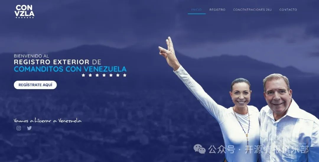 **首先是利用霸權媒體傳播該戰略。**他們負責傳播被操縱的信息,詳細解釋該策略的隱藏含義。媒體先宣傳http://www.comanditosexterior.com網站,邀請居住在國外的委內瑞拉移民和委內瑞拉國民註冊,並在平台上留下個人數據庫。該網站還在總統選舉當天宣傳“抗議”網站。