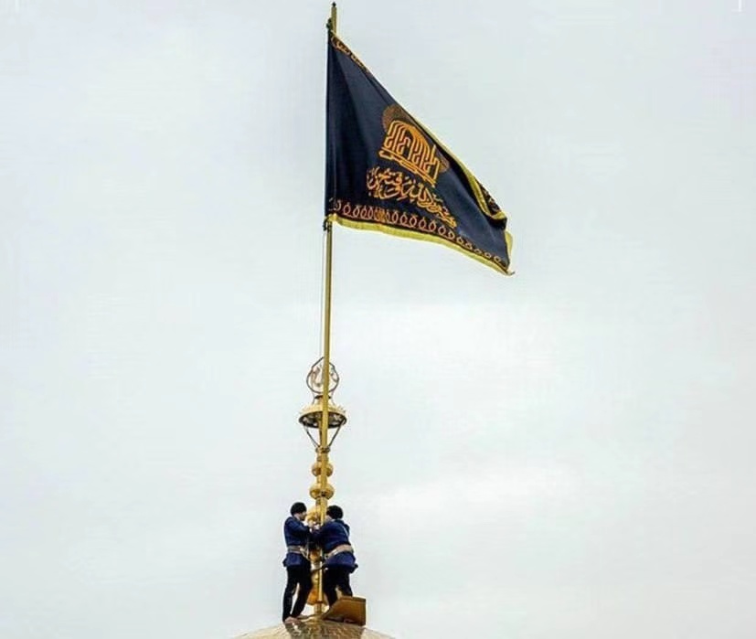 在真主黨領導人哈桑·納斯魯拉去世消息傳出後,在伊朗馬什哈德的伊瑪目禮拜堂升起了黑旗。黑旗是什葉派伊斯蘭教中用來表達悲傷的傳統符號,也代表着赴死的決心、戰爭的爆發,以及國家可能面臨新的危機與挑戰。