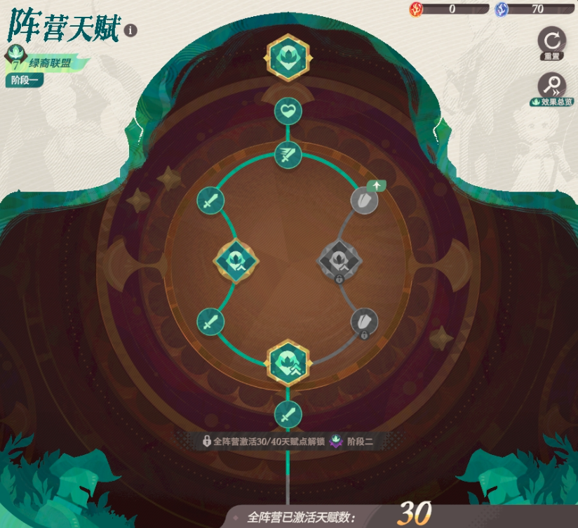 在陣營天賦中,玩家通過消耗特定資源,可以再對天賦核心的技能做進一步強化,而且還有多個分支可以選擇。
