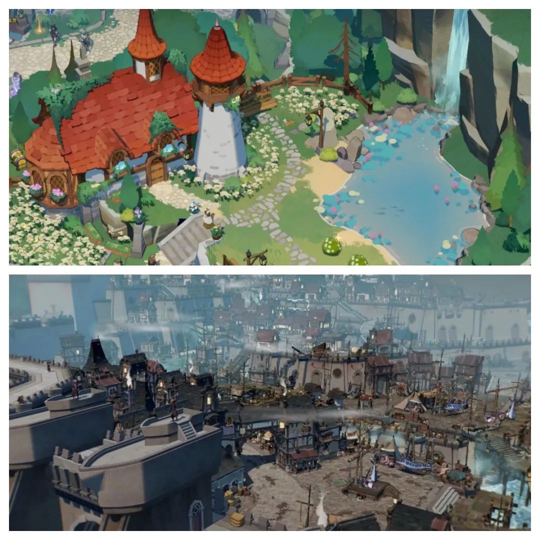 其中最直觀的要屬地圖。對比玩家在啓程篇章中見到的,被鮮花、草地和蝴蝶環繞的聖石鎮,這座名為“鏽錨港”的海邊城市就顯得要粗獷不少。