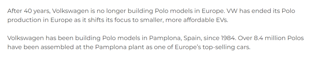 最近,脖子哥在找選題的時候,看到這麼一條新聞:大眾宣佈在歐洲停產 Polo。