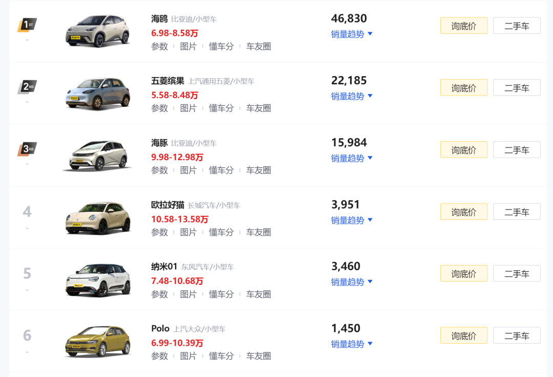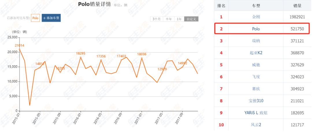 國內的小型車基本是海鷗、繽果、海豚三分天下, Polo 雖然排名第 6 ,但銷量和第一名的海鷗差了足足 30 幾倍。