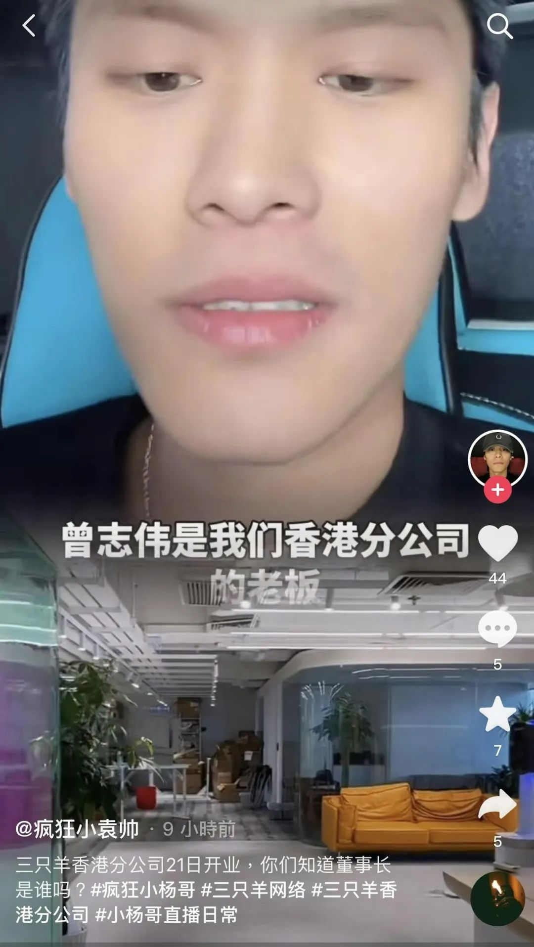 而此前小楊哥稱曾志偉是三隻羊香港分公司的老闆。