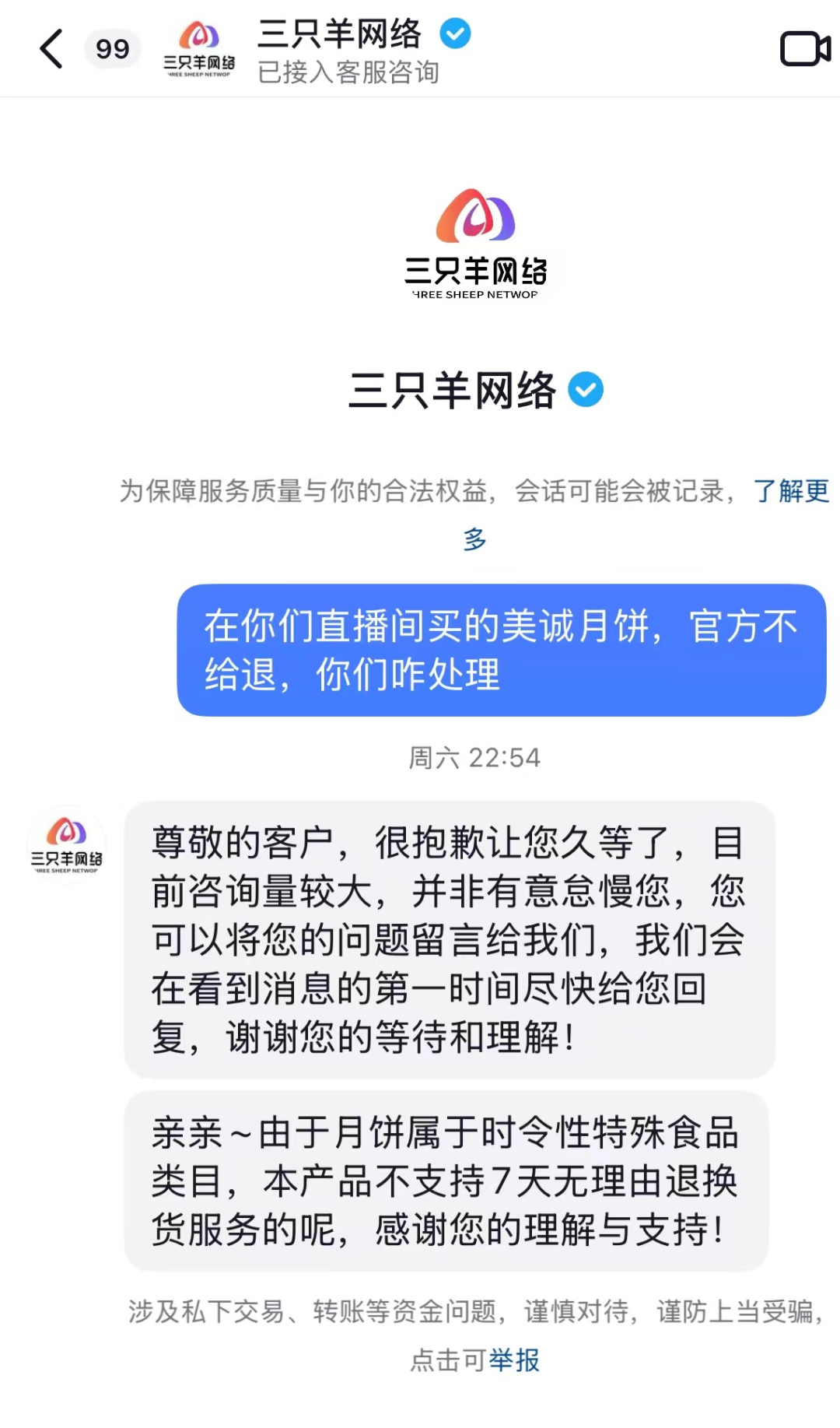 而另一半,寒在了得知三隻羊拒絕為香港美誠月餅退貨退款的時候。