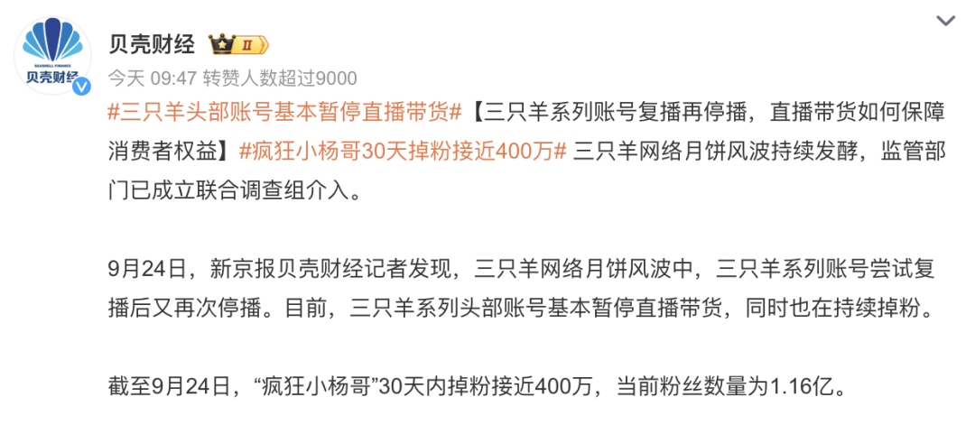 小楊哥一個月掉粉近400萬