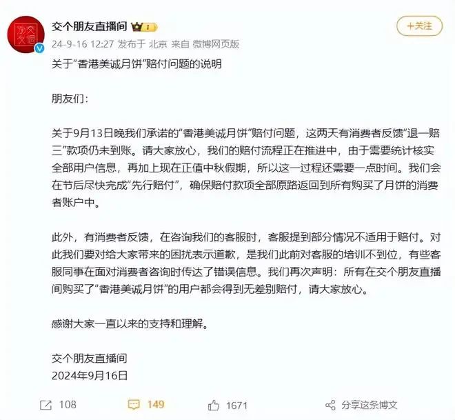 次日上午,三隻羊終於啓動了退一賠三,據稱賠付流程還很複雜。