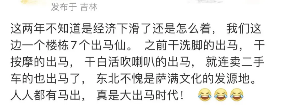 至於為什麼現在“出馬”又成了東北熱門職業,那理由就更顯而易見了。