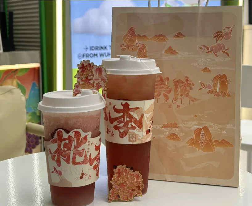 這款產品精選宜昌特產白玉桃和脆紅李,新鮮果肉搭配恩施玉露綠茶,再加入白玉凍桃小料,一大口下去汁水豐滿、桃肉綿軟。