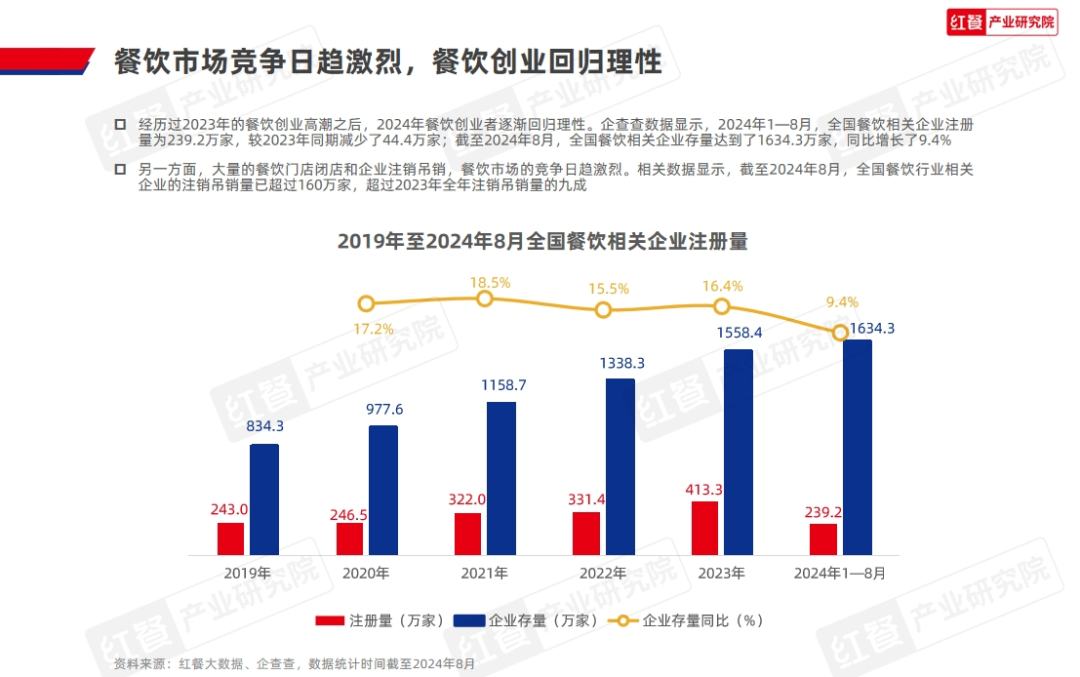2.餐飲創業迴歸理性,前8月餐飲相關企業吊註銷量超2023年全年的九成