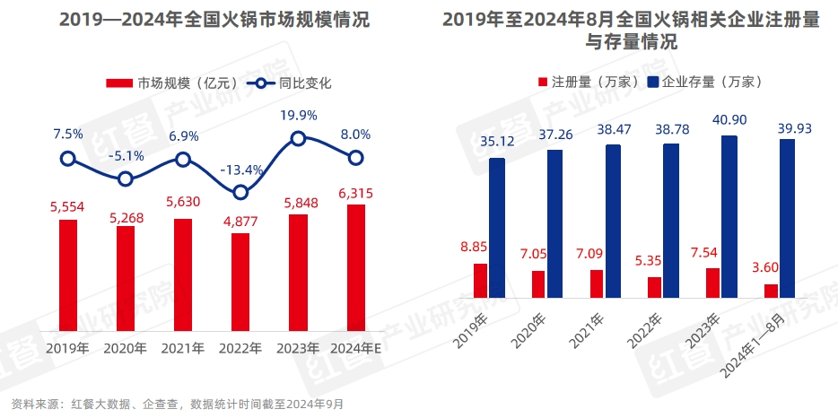紅餐大數據顯示,2023年全國火鍋的市場規模已達到5,848億元,2024年有望突破6,000億元。截至2024年9月,全國火鍋總門店數超過53萬家。