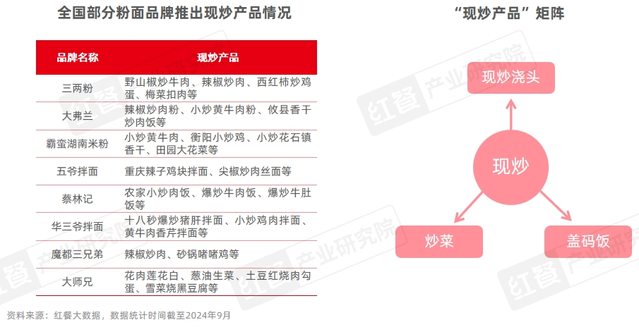 而粉面賽道的眾多品牌紛紛探索“現炒模式”,推出了現炒澆頭、蓋碼飯、炒菜等產品,以擴大消費羣體。