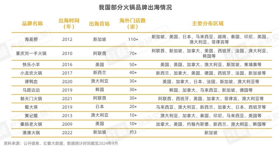 1.火鍋:品牌出海時間較早,已基本完成市場教育