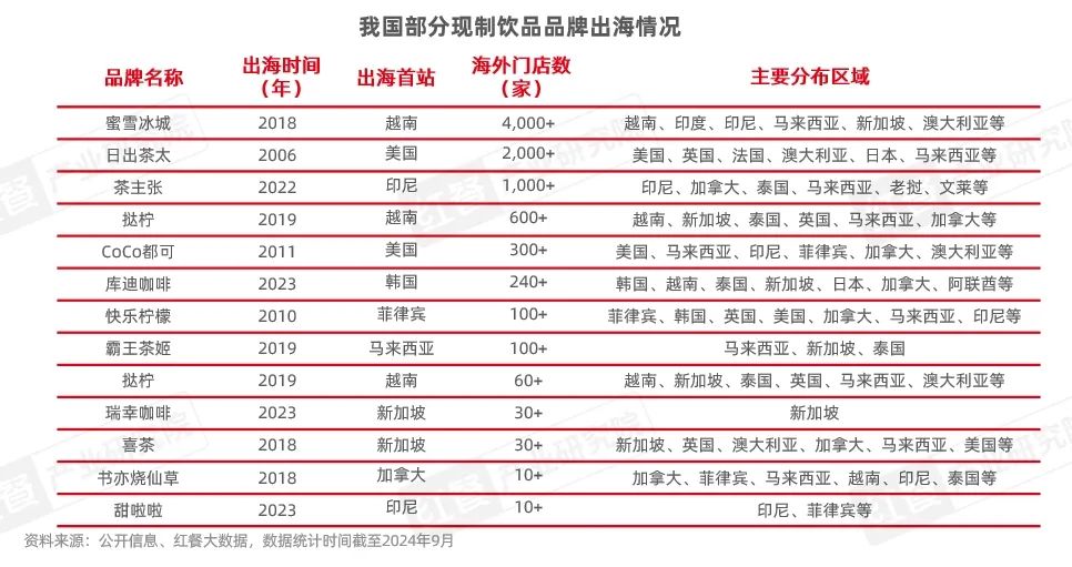 2.現制飲品:品牌出海提速,部分品牌海外門店數已超千家