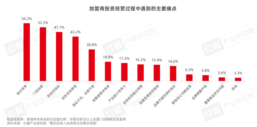 在經營痛點方面,職業加盟商表示在投資經營過程中,面臨的主要難點集中在低價競爭、門店加密、回本週期長、實際毛利率低於預期等方面。此外,選址失誤導致業績不佳、消費者需求變化快速、產品競爭力不足也是重要挑戰。