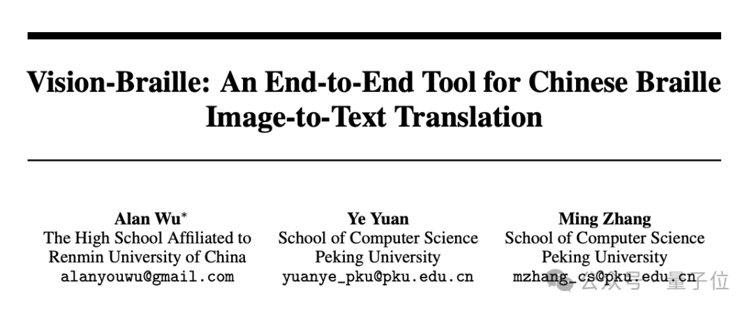 論文題為《Vision-Braille:An End-to-End Tool for Chinese Braille Image-to-Text Translation》,提出了一種中文盲文圖像到文本的端到端翻譯工具。