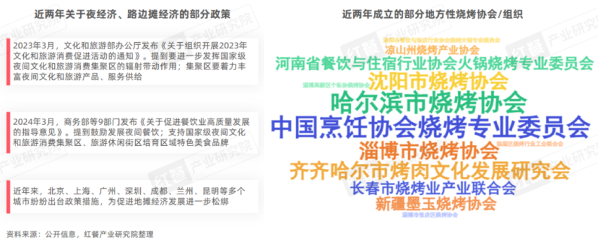 外部環境方面,其一是政策的支持。國家對夜經濟的積極扶持為燒烤產業注入了強勁動力。各地燒烤協會與組織的成立,如中國烹飪協會燒烤專業委員會、瀋陽市燒烤協會等,這些協會和組織的成立不僅加強了行業內的交流與合作,還推動了燒烤產業向標準化、規範化方向發展。