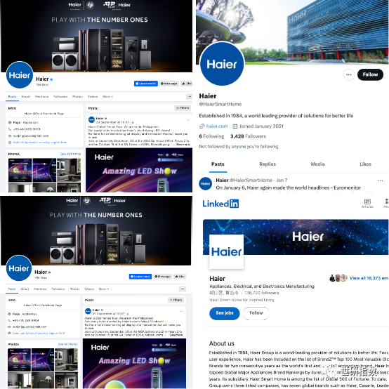 海爾同時也利用國際社交社交媒體來進行全球品牌的傳播: