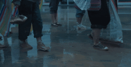 所有人合力護送女娃們從暴雨走到雨停,從泥濘的山路走到平坦的水泥地,拍出來全劇第一個高燃名場面。