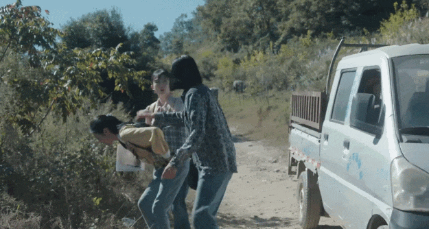 誰知在這驚險的逃亡時刻,新晉騎手張老師拉着孩子直接撞進了秸稈堆裏。