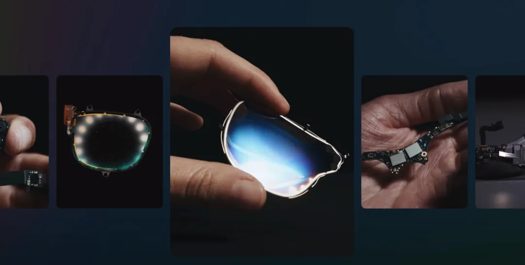 玻璃不好投影?換碳化硅,這東西嘎嘎能投;投影體積太大?搞輕量化,小小的也要很厲害,還環繞眼睛弄一圈,最後整機做到了 90 克,效果好像也還差不多。