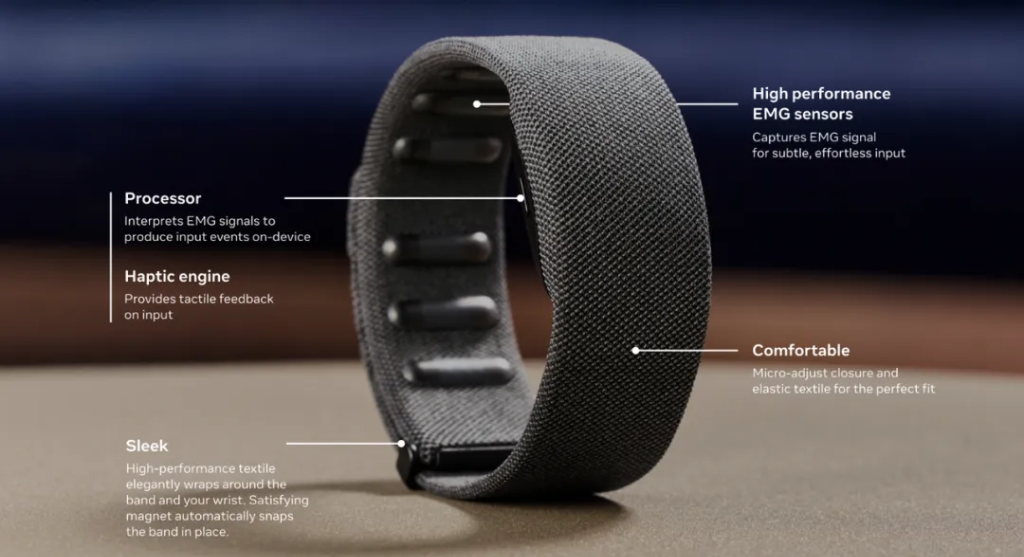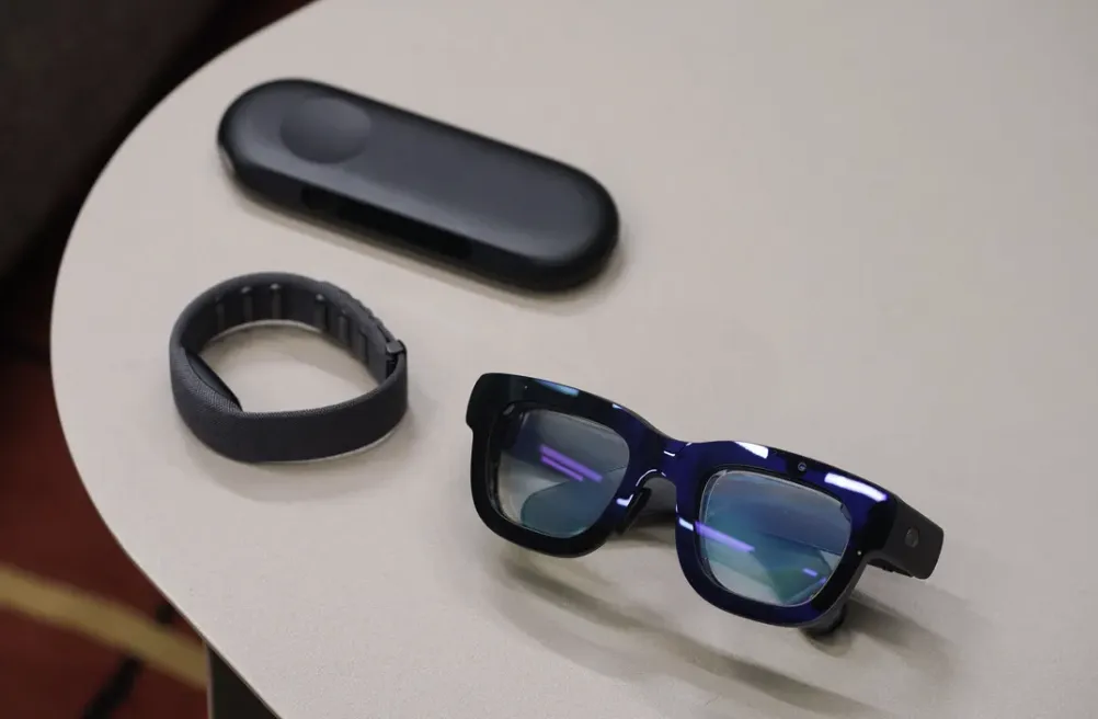 完事你再看這個交互吧,不用在眼鏡腿上摸,不用那手柄揮,就擱一邊悄摸動動手指,這配套的手環就能檢測到神經信號,完事給你類似鼠標的功能。