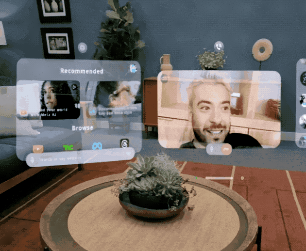 XR 頭顯裏的那些分屏顯示很高級吧,看上去就能提升生產力,他這眼鏡裏也能搞。