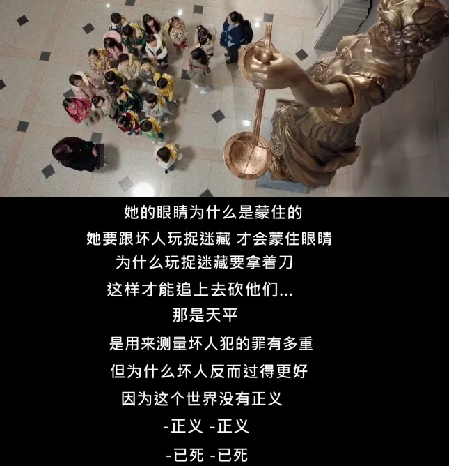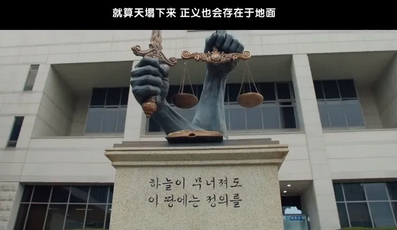 在女主工作的法院之外,佇立着一座代表正義的雕像。