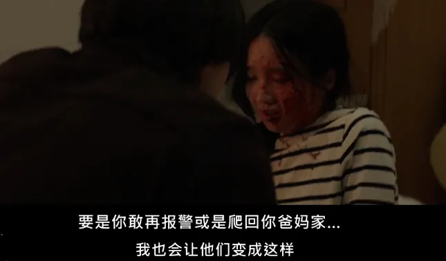 就像身為男主的警察,在看到受害者的慘狀後,不忍的他打算長期蹲守在她身邊,並對施暴者一次又一次發出警告。