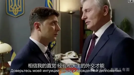 這張弛有度的演技,盡顯澤連斯基當演員的風采,值得在新一屆的奧斯卡給他提個“最佳男配角獎”。當年,他就是在烏克蘭的電視劇《人民公僕》裏用演技征服了烏克蘭民眾,讓他們以為他就是真正的人民公僕。