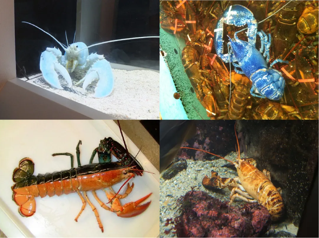 龍蝦之所以能呈現出不同顏色,取決於它們的基因和飲食差異。其中的關鍵在於蝦青素,它的顏色與煮熟的龍蝦一樣,是橙紅色的。蝦青素與甲殼藍蛋白反應,使龍蝦呈現出深藍色。當發生基因突變,龍蝦就會呈現出異常的顏色。龍蝦自己不能製造蝦青素,需要從食物中獲取。但龍蝦被煮熟後,蛋白質會變性,蝦青素被釋放出來,便恢復到橙紅色狀態。