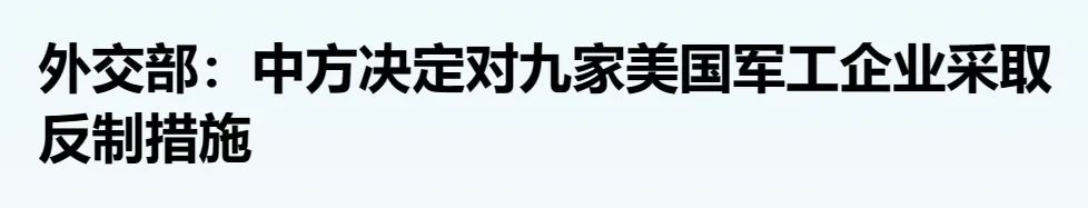2022年佩洛西竄訪事件之後,我國開始對美國軍工企業實施制裁。