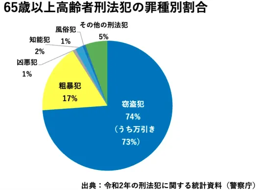 據日本警察廳統計,日本監獄中超過20%的囚犯的年齡超過60歲,而他們的罪名超過74%都是盜竊。
