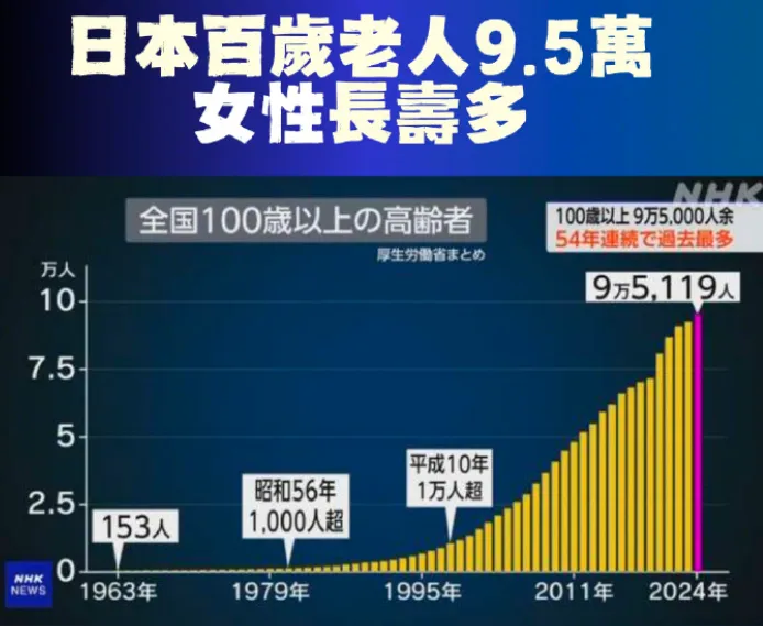 日本老齡化問題嚴重已經是個人盡皆知的事實了,9月15日,日本老生勞動省公佈的數據顯示“全日本100歲以上的老年人已經達到9.2萬人,比去年增加1,613人,已經連續增加了53年,創歷史新高。其中最高齡者為116歲”