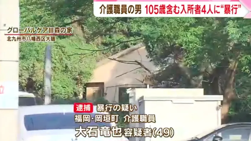大石在8月24日早上六點到七點之間,在他所工作的北九州市八幡西區專門治療痴呆症的收費療養院“森之家”裏,毆打了四名住院人員的頭部和麪部,而這四名住院人員的年紀都在94歲到105歲之間。