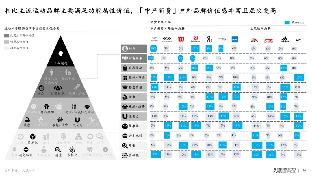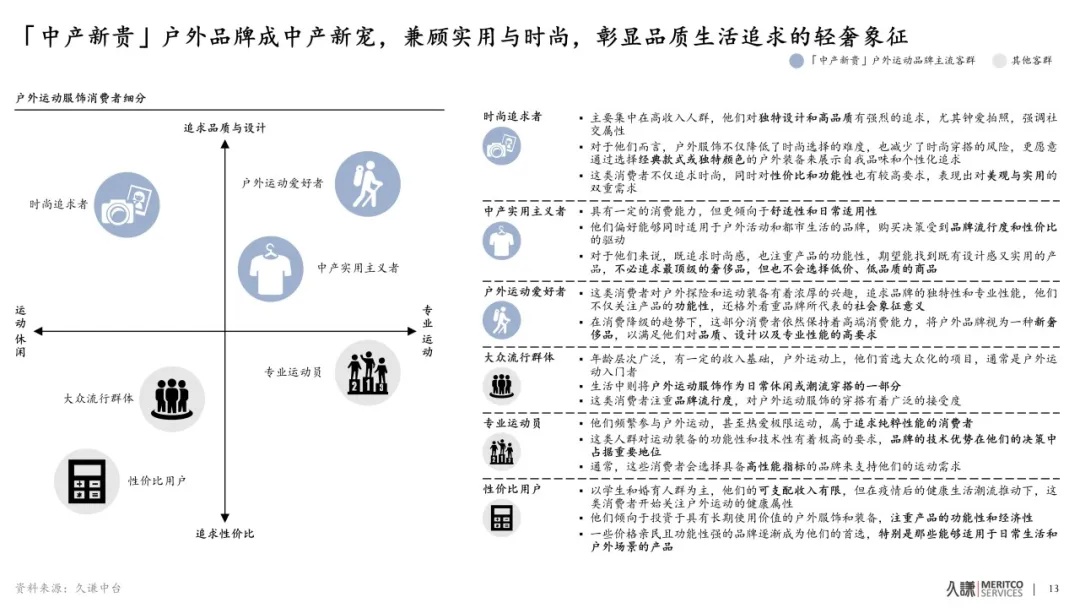 “理性奢侈”逐漸成為中產階層的消費主流,在消費降級的趨勢下,人們更加註重產品的實用性、品質和性價比,因而傳統奢侈品的吸引力有所減弱,但消費者對彰顯個人品味和身份認同的需求依然強烈,中產新貴户外品牌恰好填補了這一市場空白。