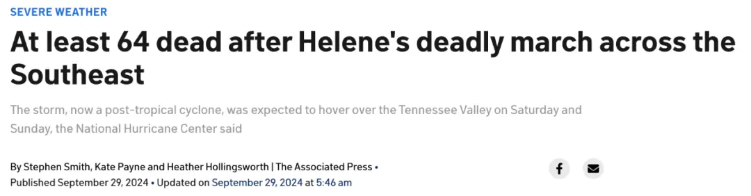 已致64死!颶風席捲美國東南部,“像炸彈爆炸”,度假小鎮被從地圖上抹去_風聞