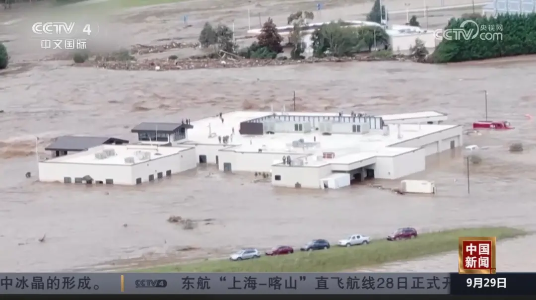 山體滑坡和洪水迫使40號州際公路等道路關閉,導致北卡羅來納州西部一些地區與外界隔絕。據美聯社報道,在北卡州米切爾山附近居民區斯普魯斯派恩,24日至28日降雨量達600毫米。當地居民麗貝卡·牛頓告訴媒體:“斯普魯斯派恩已經不見了,除了露出水面的屋頂,什麼也看不到。”