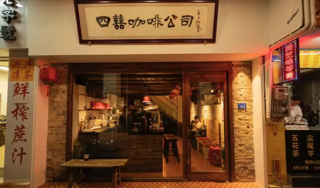 此外,廣州的囍·工坊咖啡,在社交平台人氣頗高,這家店將中國傳統婚嫁文化與西式咖啡文化完美融合,進店滿目的“囍”元素以及結婚物件,讓人秒回80年代。