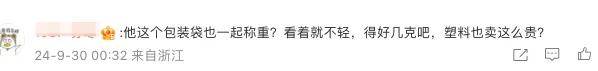 比如有網友表示:他們這個包裝袋也一起稱重**?看着就不輕,得好幾克吧,塑料也賣這麼貴?**