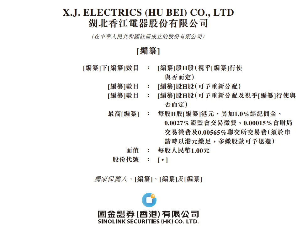據港交所9月29日披露,湖北香江電器股份有限公司向港交所主板提交上市申請,國金證券(香港)有限公司擔任獨家保薦人。