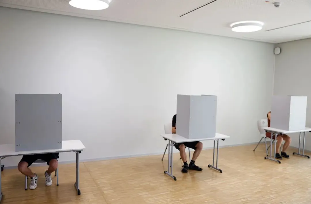 9月1日,德國薩克森州首府德累斯頓,選民在一個投票站為地區選舉投票。本文圖/視覺中國