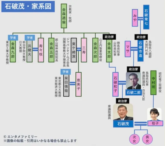 他在2年之後,聽從了田中角榮的鼓勵,從銀行辭職投身政界。也是在那一年,中村佳子成了石破茂的夫人。