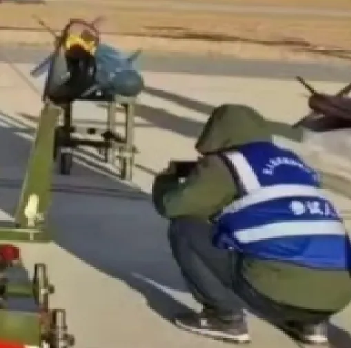 相比之下,此次擺在彩虹-9前邊的這枚高超音速飛行器,似乎就顯得袖珍一些,從一側的參研參試人員來看,估計它的彈體直徑是要稍微小點的。